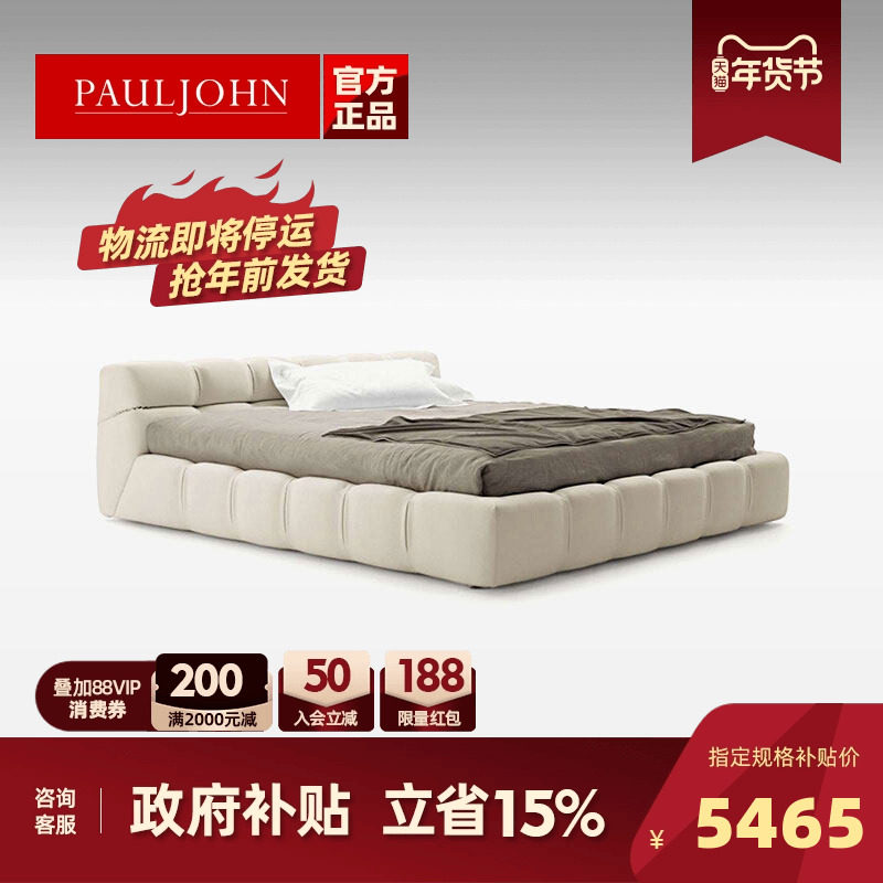 乔登主卧室真皮泡芙床tufty落地榻榻米高端大气简约现代双人婚床