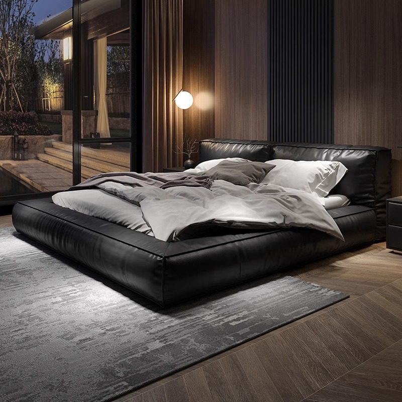 【Justin】矮床头真皮床意式极简豆腐块床网红轻奢卧室榻榻米床架