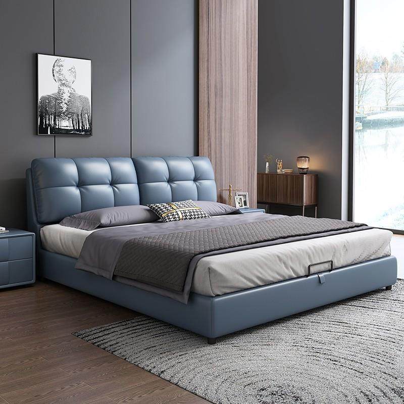意式轻奢真皮床主卧现代简约双人床北欧头层牛皮大气榻榻米软包床
