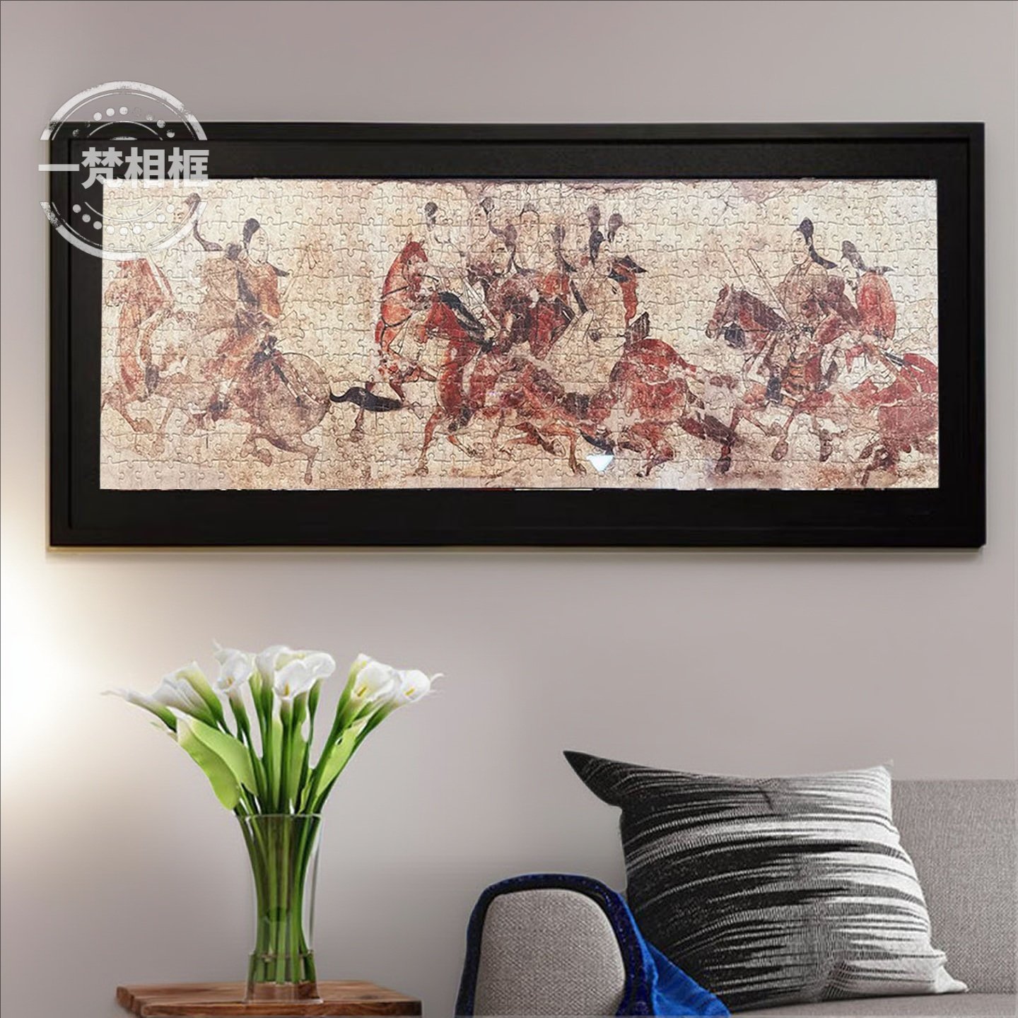 山西博物馆文创鞍马出行图壁画配套拼图框 加黑卡纸实木画框挂墙