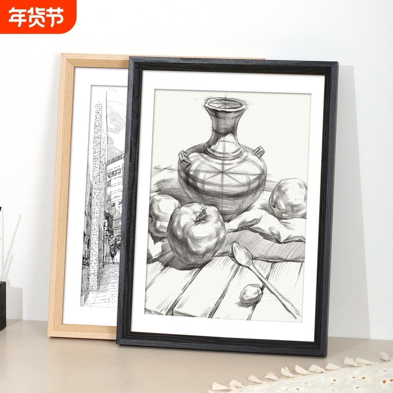 实木画框挂墙自己装裱A3a4定制卡纸大相框素描水彩4开8k任意尺寸