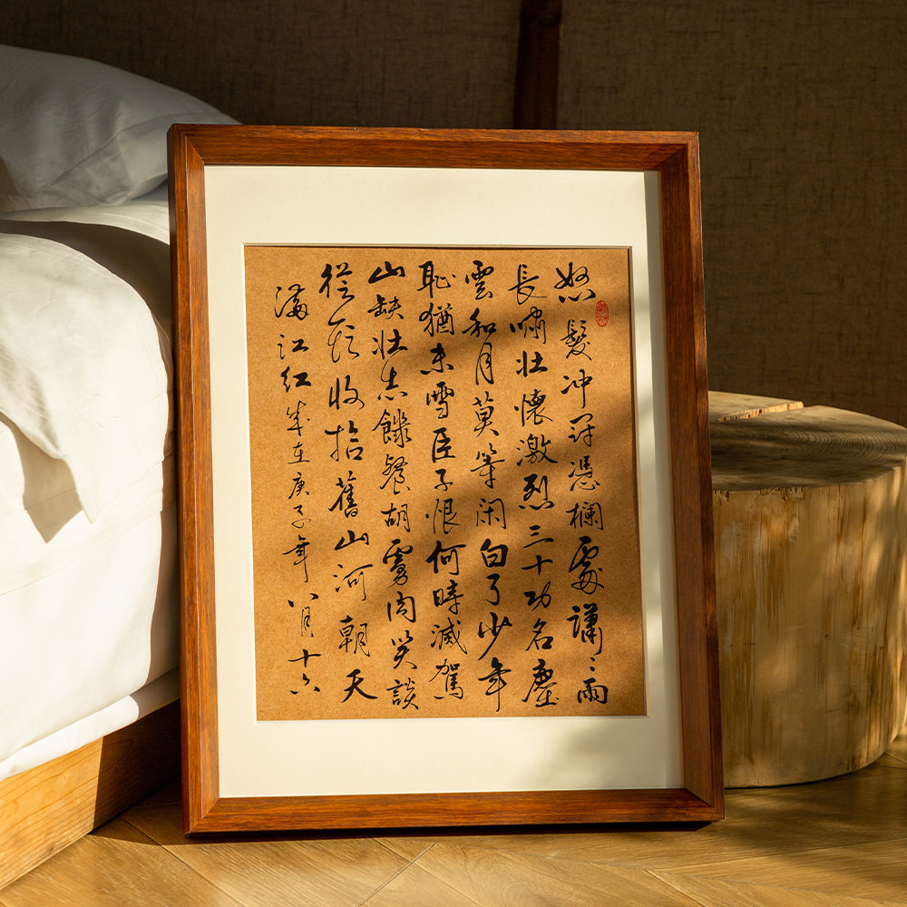 实木画框挂墙摆台装裱书法正方形相框防潮背板长方形国画空框简约
