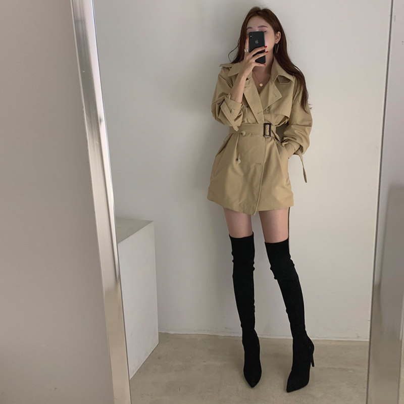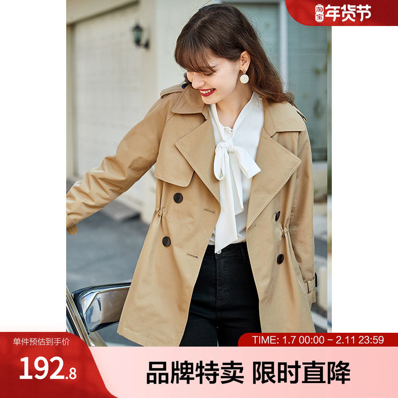 徕倩风衣女短款早春新款气质英伦风双排扣休闲小个子外套 CO6706