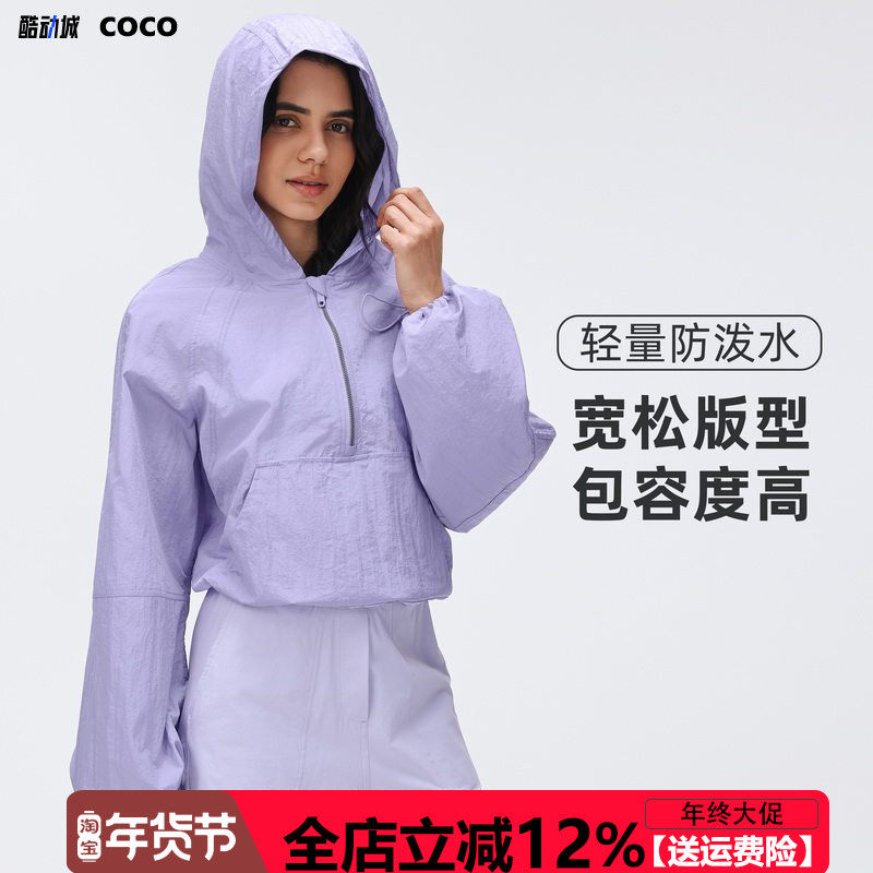 COCO Active半拉链连帽运动风衣女短款宽松百搭户外跑步健身外套