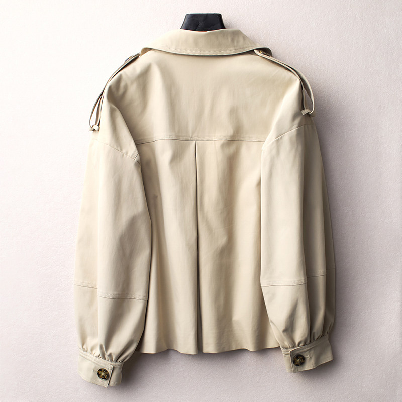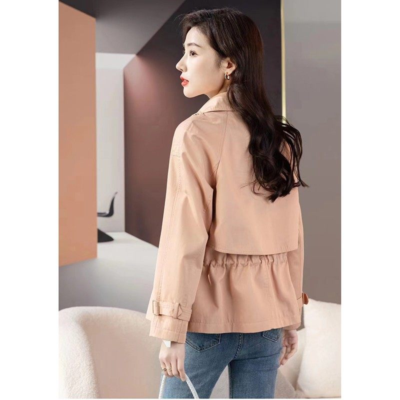 布景风衣女短款春季新款简约通勤西装领双排扣可收腰宽松外套0104