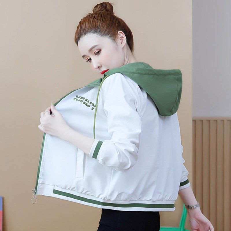 2024年春秋新款小个子风衣女短款棒球服外套拉链开衫连帽夹克上衣