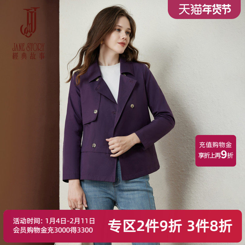 经典故事秋季时髦气质双排扣风衣女短款2025新款防风夹克小个子