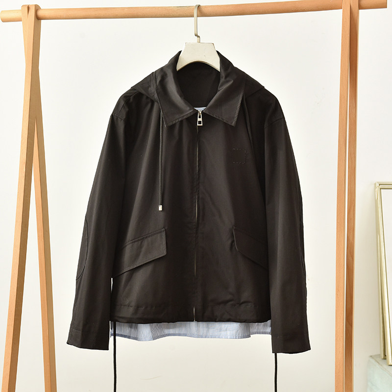 设计感连帽假两件风衣女短款抽绳宽松休闲外套 莉2932 G3-2