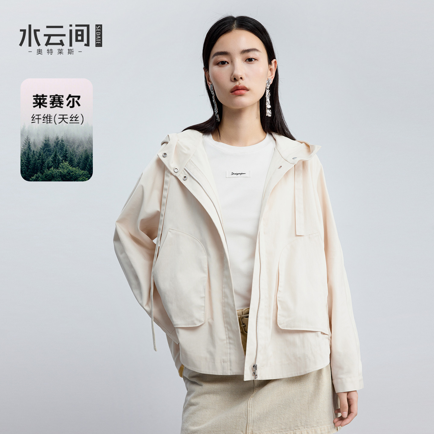 水云间白色连帽风衣女短款外套户外运动风上衣宽松轻盈2026春新款