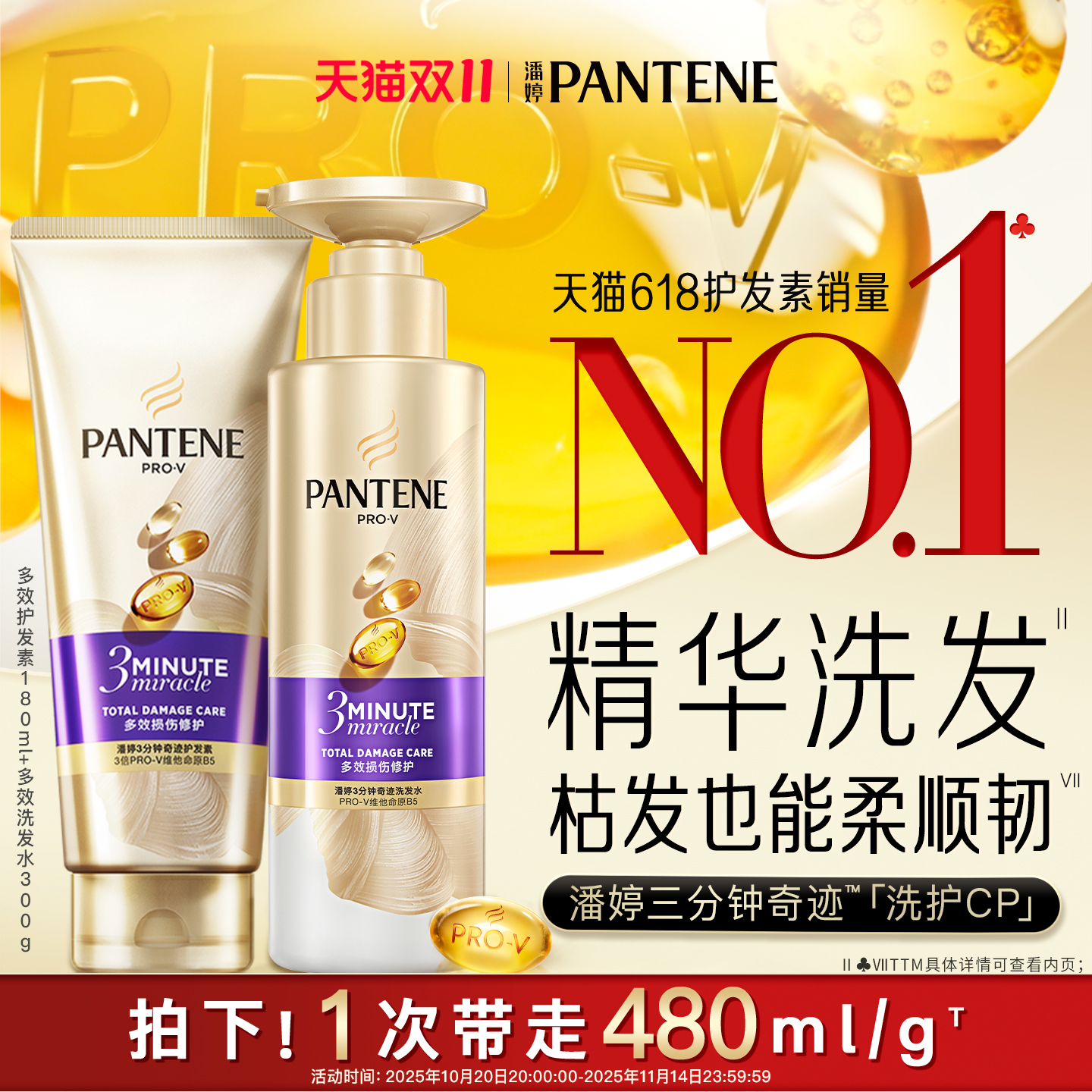 【淘宝秒杀】潘婷三分钟奇迹洗发水女护发素洗护套装修顺官方正品