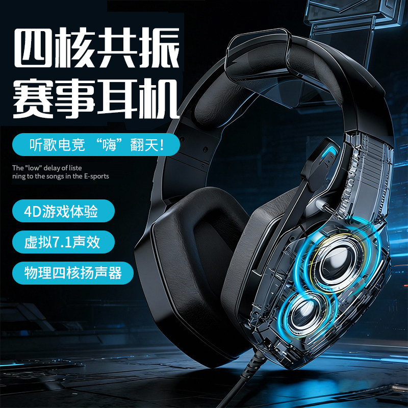V6S 7.1USB头戴式有线耳机台式电脑耳机带麦克风电竞游戏