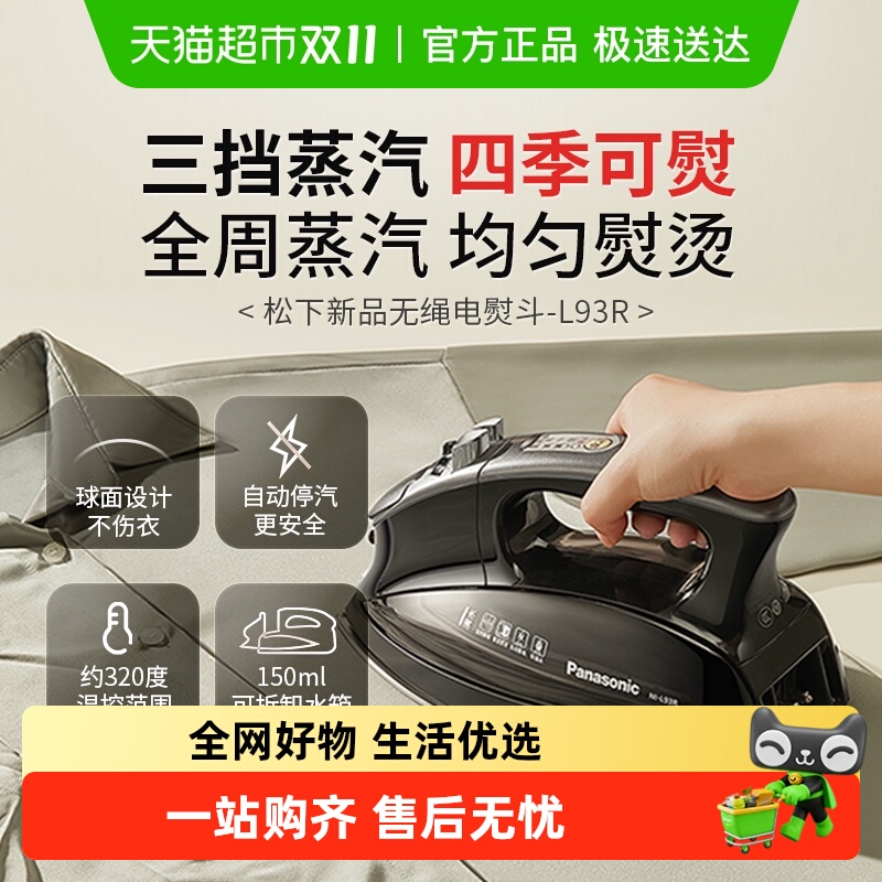 松下电熨斗L93R家用手持蒸汽熨斗无线熨烫机大功率挂烫机1005