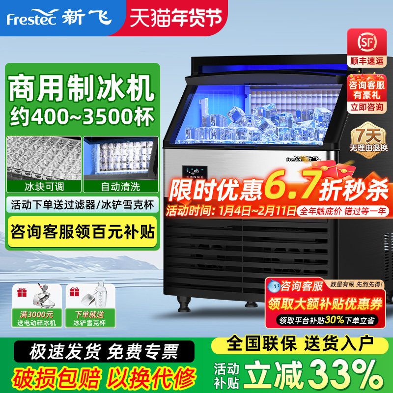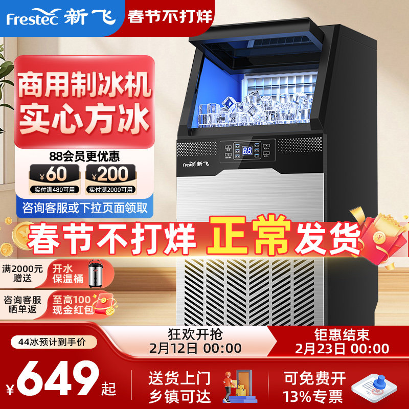 新飞制冰机商用制作冰块机大容量奶茶店造冰机45/100kg快速产方冰