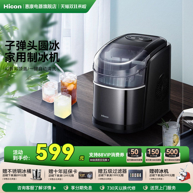 Hicon惠康制冰机商用奶茶店小型饮水机家用全自动智能冰块制作机