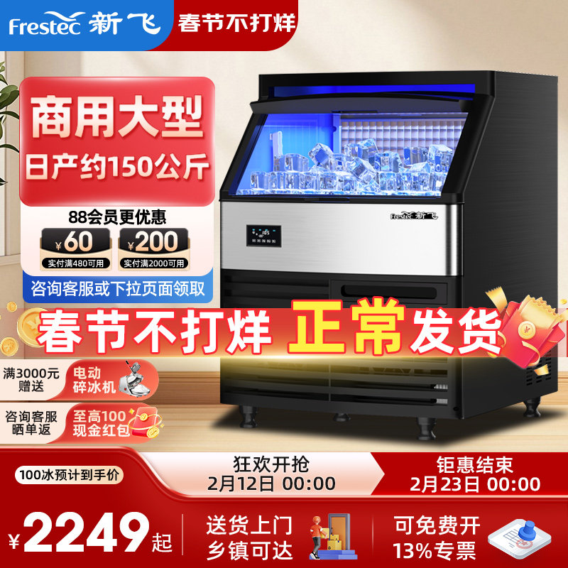 新飞制冰机商用奶茶店日产85/150kg全自动一体机摆摊小型造方块冰