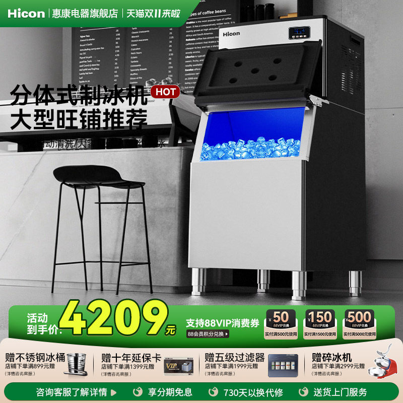 Hicon惠康分体式制冰机商用奶茶店250KG/300KG大型自动冰块制作机