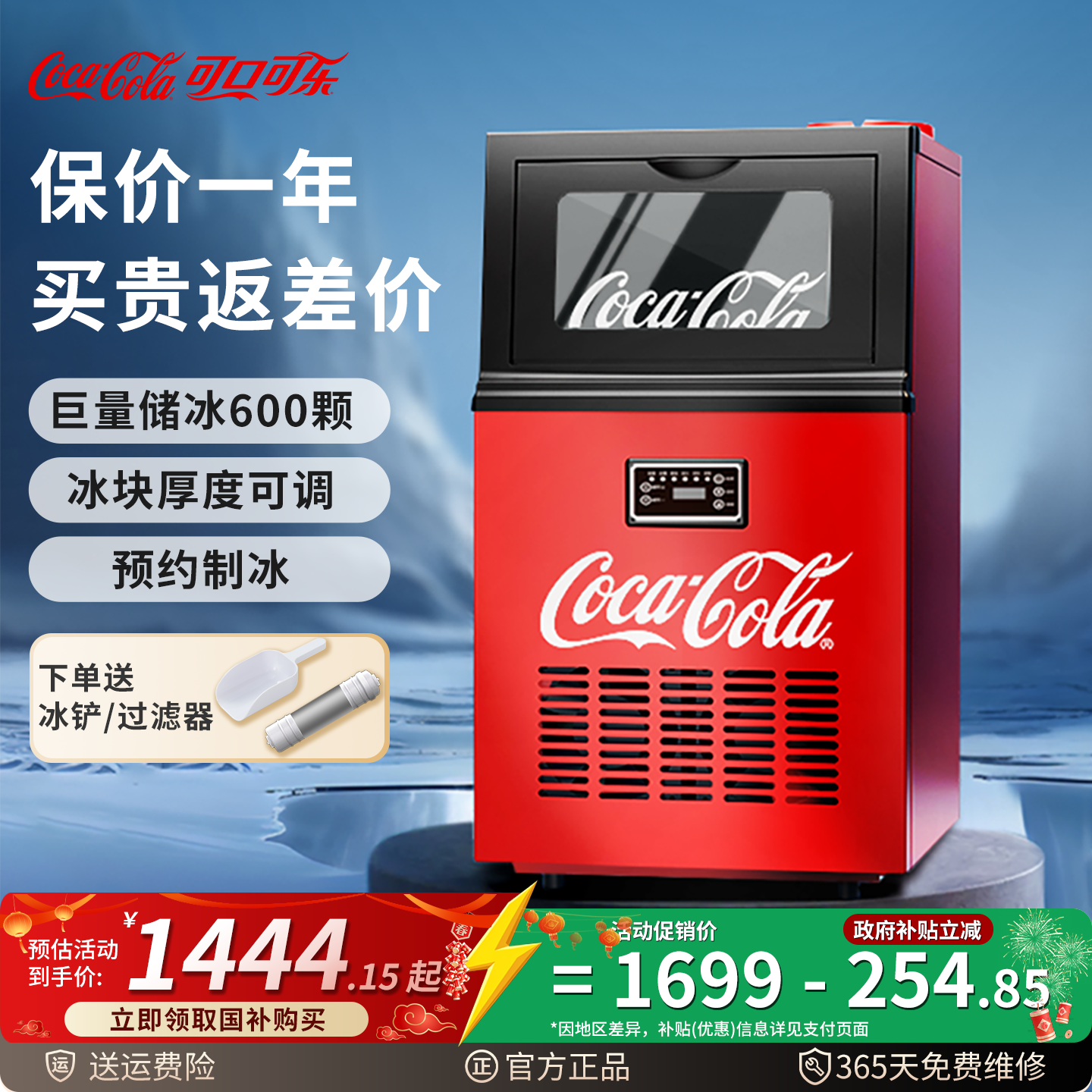 可口可乐制冰机商用奶茶店大容量小型全自动方块冰吧台冰块冷柜机