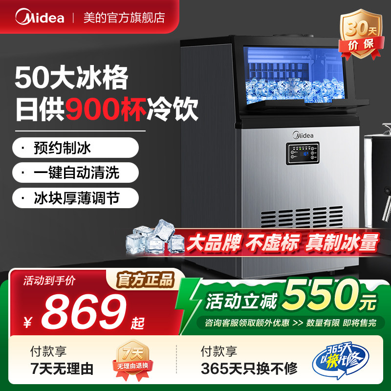 美的制冰机商用全自动实心方块冰制造一体小型奶茶店冰粒机大容量