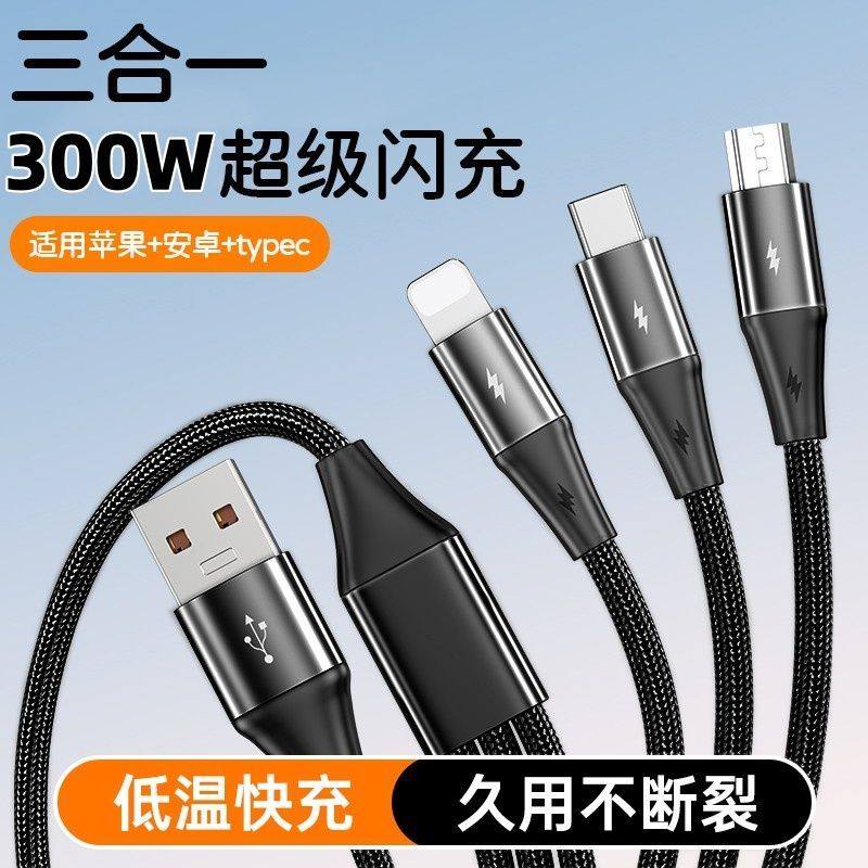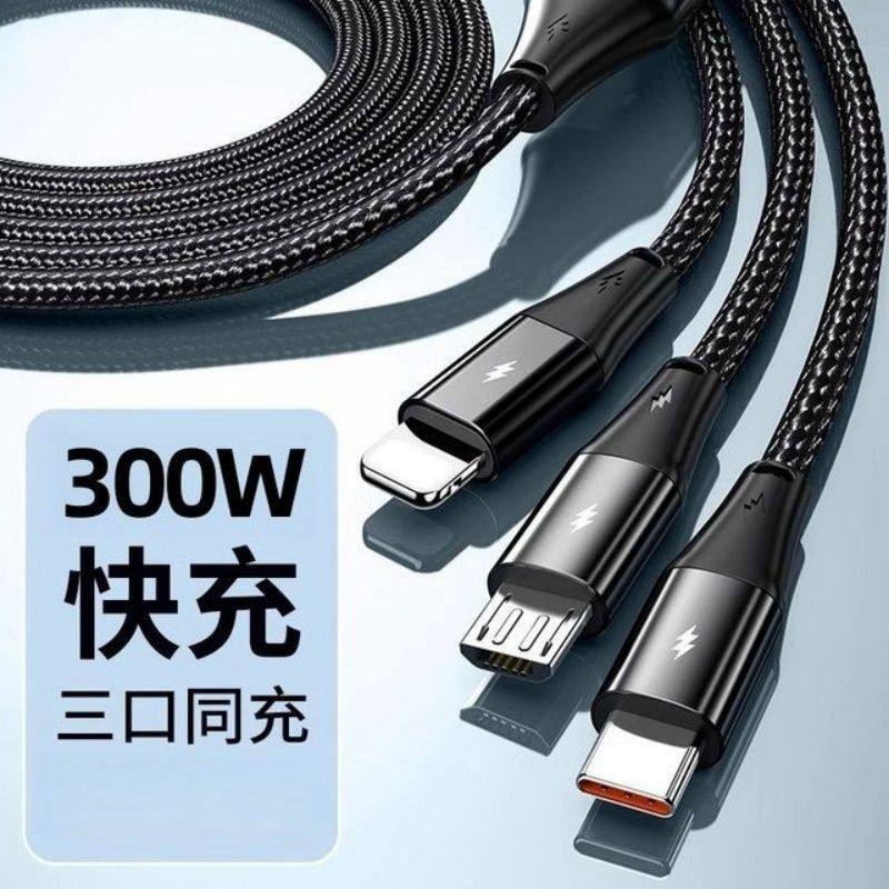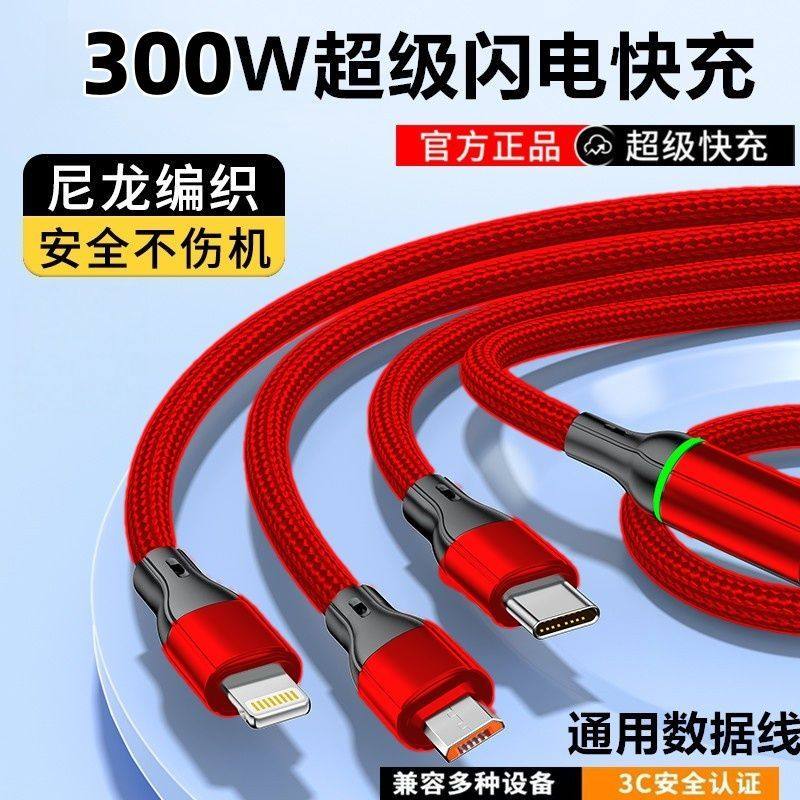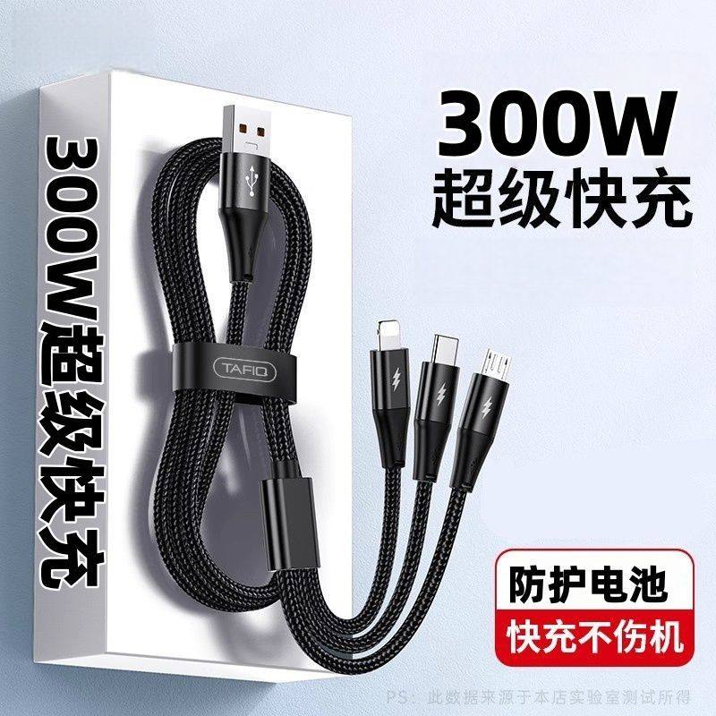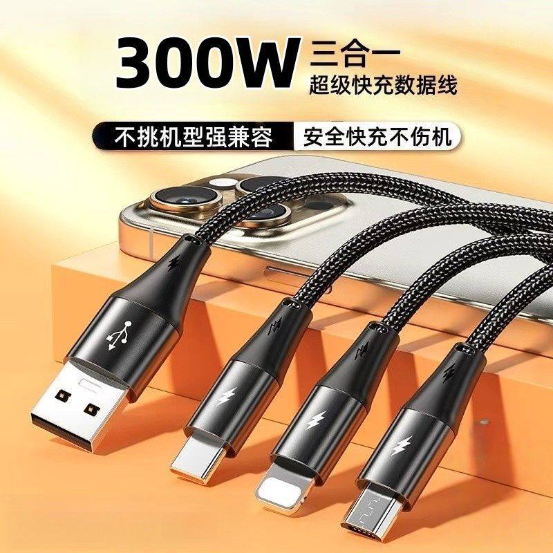 300W数据线一拖三超级快充三合一适用华为苹果小米手机充电线车载
