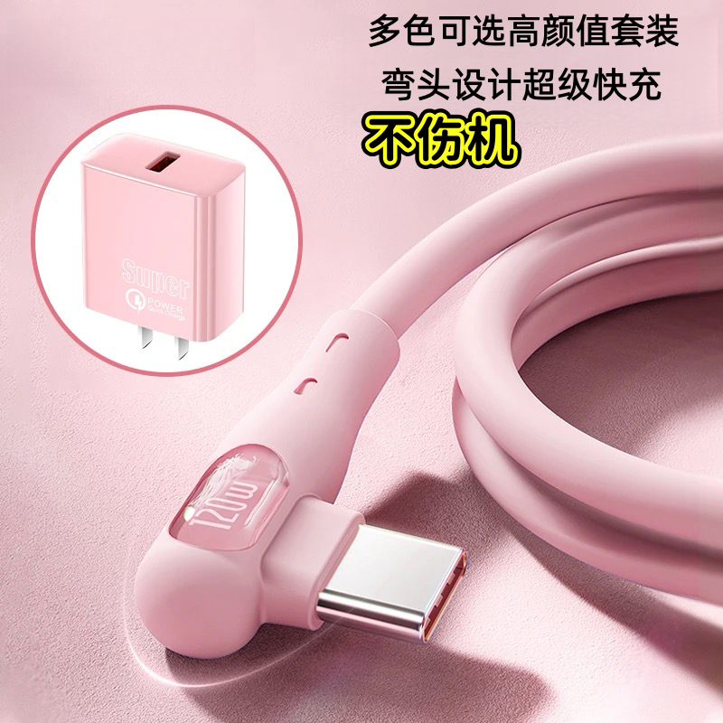 快充线Type-C弯头数据线适用华为P60/40/20/Mate荣耀安卓闪充小米手机充电线充电器通用超级快充充电器头