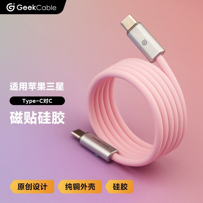 GeekCable适用苹果华为小米手机充电线超级快充收纳磁吸磁贴硅胶