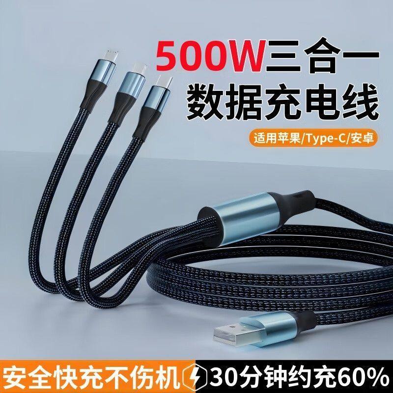 编制500W超级闪充数据线三合一适用苹果华为OPPO小米手机充电线6A