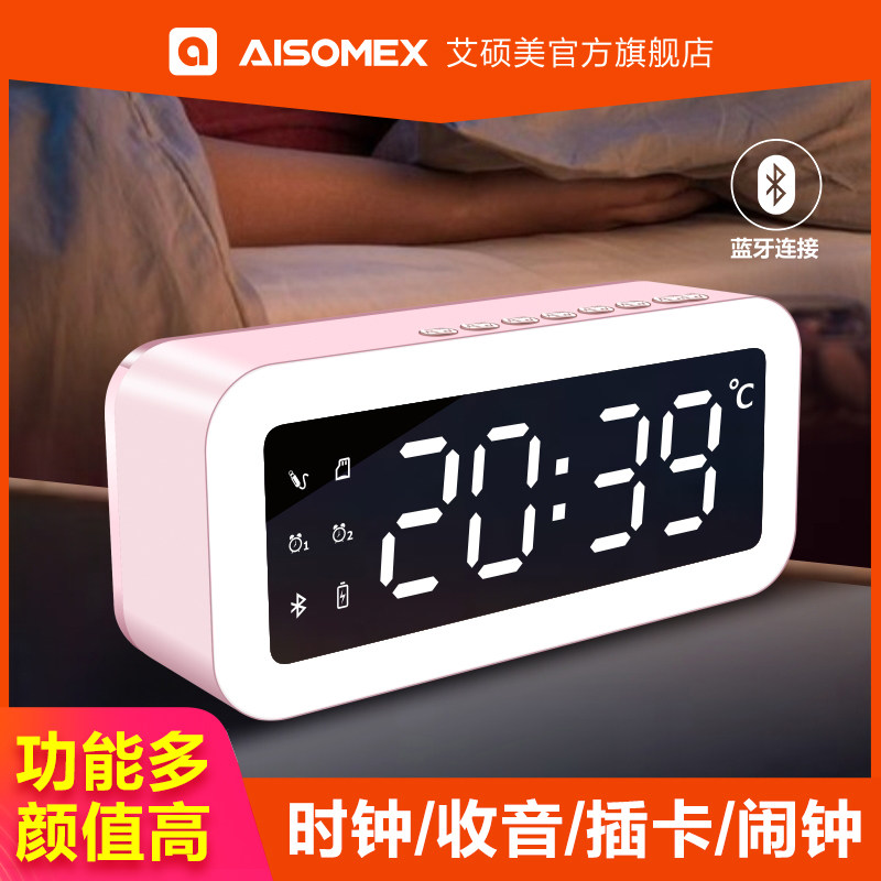 艾本桌面时钟闹钟FM调频收音蓝牙音响大学英语四六级考试收音机