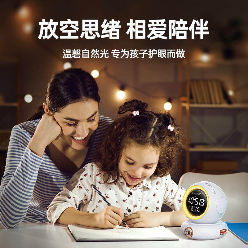 新款宇航员蓝牙音箱灯日出唤醒灯LED床头小夜灯闹钟收音机氛围灯
