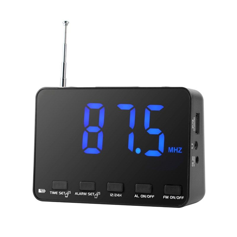 米跃W01便携式FM收音机大屏显示桌面时钟床头闹钟收音机模供电