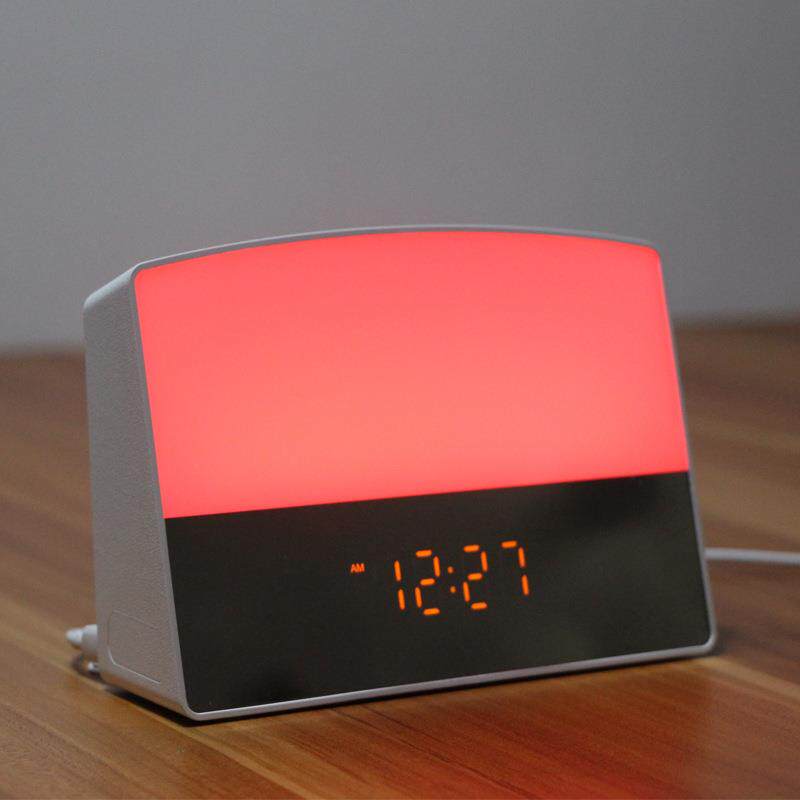 2021新款唤醒灯闹钟日落睡眠灯模拟日出起床灯收音机七彩电子时钟
