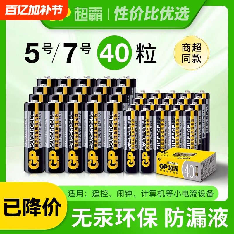 GP超霸黑超霸5号7号碳性电池AAA适用于儿童玩具空调电视机遥控器鼠标挂钟体重秤收音机1.5V干电池充电闹钟
