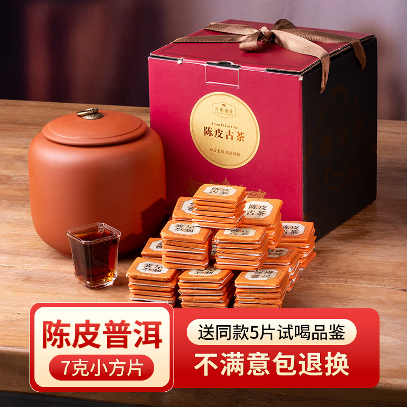 陈皮普洱茶柑普小方片茶6年陈冰岛古树正宗新会陈皮普洱茶叶礼盒