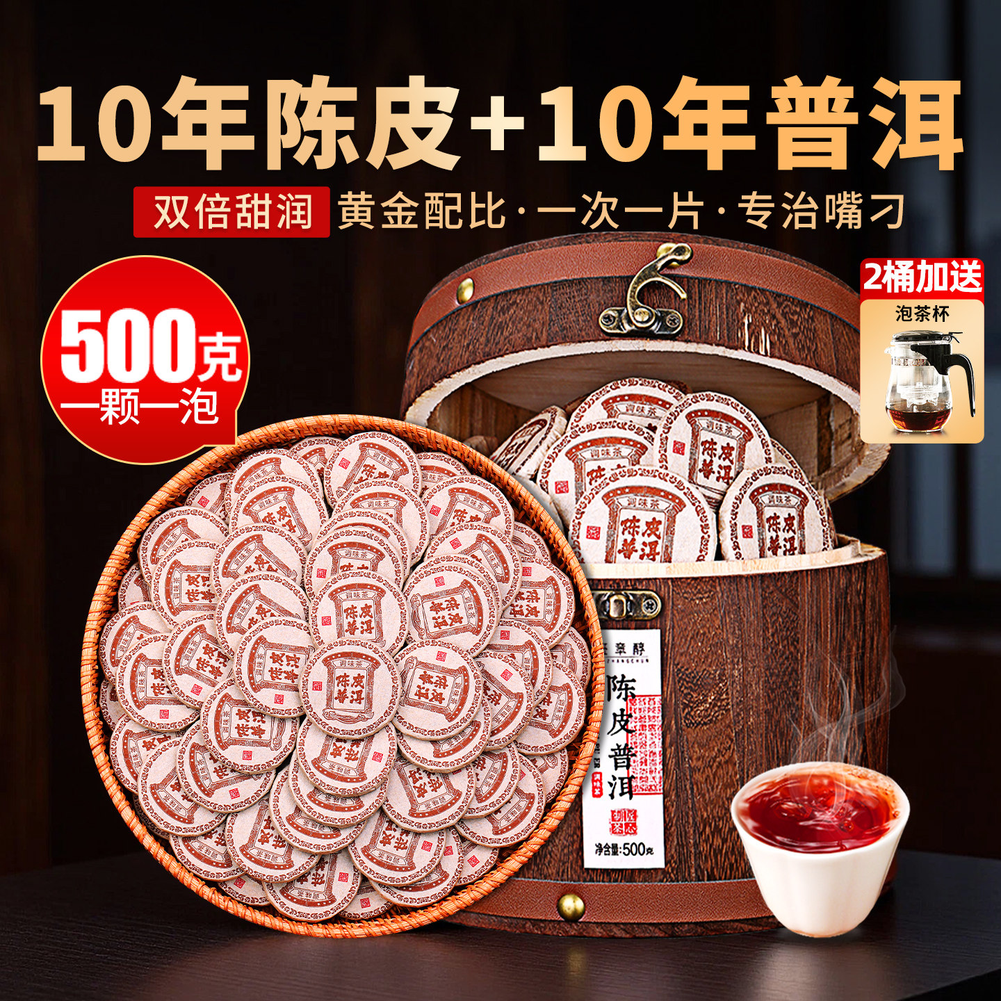正宗新会小青柑普洱茶特级十年陈熟茶生晒陈皮柑普茶金奖茶叶500g