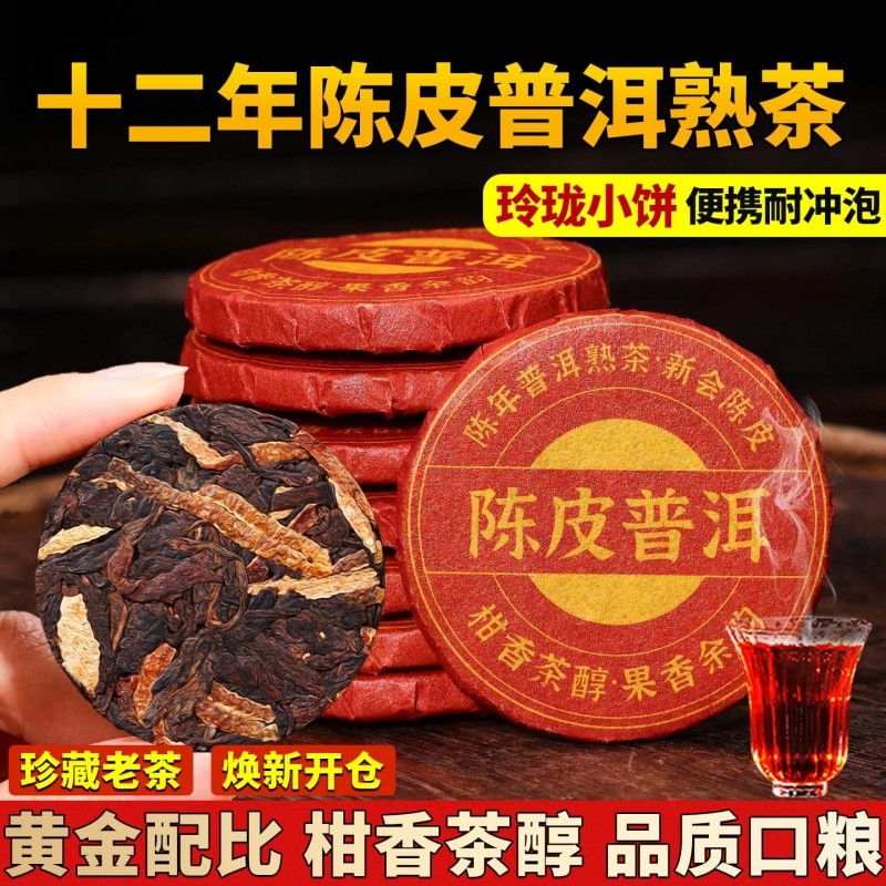 新会陈皮普洱茶熟茶十年以上云南古树小茶饼沱正宗柑普茶叶自己喝