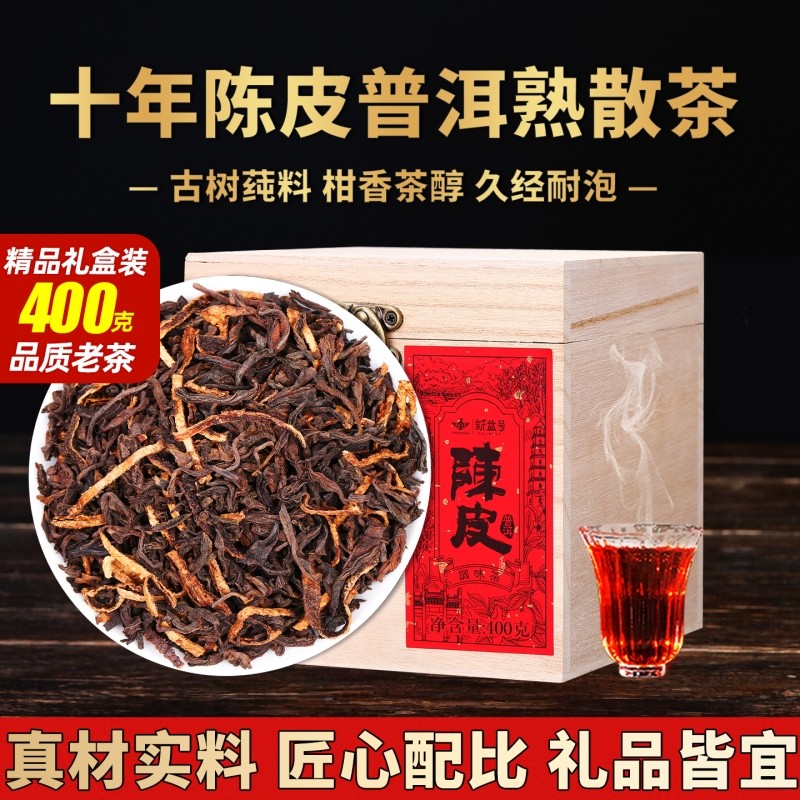 正宗新会陈皮普洱茶熟茶十年以上新益号官方旗舰店古树柑普散茶叶