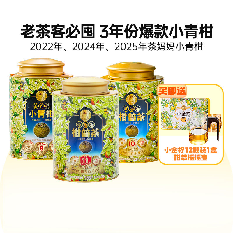 【囤】2022/24/25年茶妈妈小青柑新会陈皮普洱茶熟茶3年份组合装