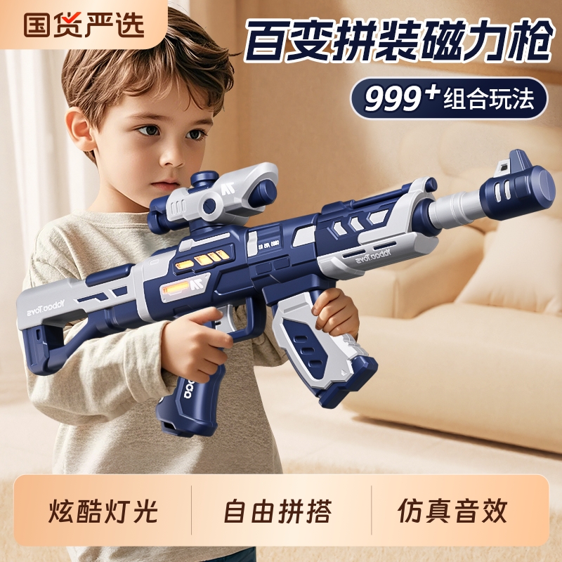 儿童电动声光玩具枪组合拼装磁力枪36岁男孩生日礼物男童益智组装