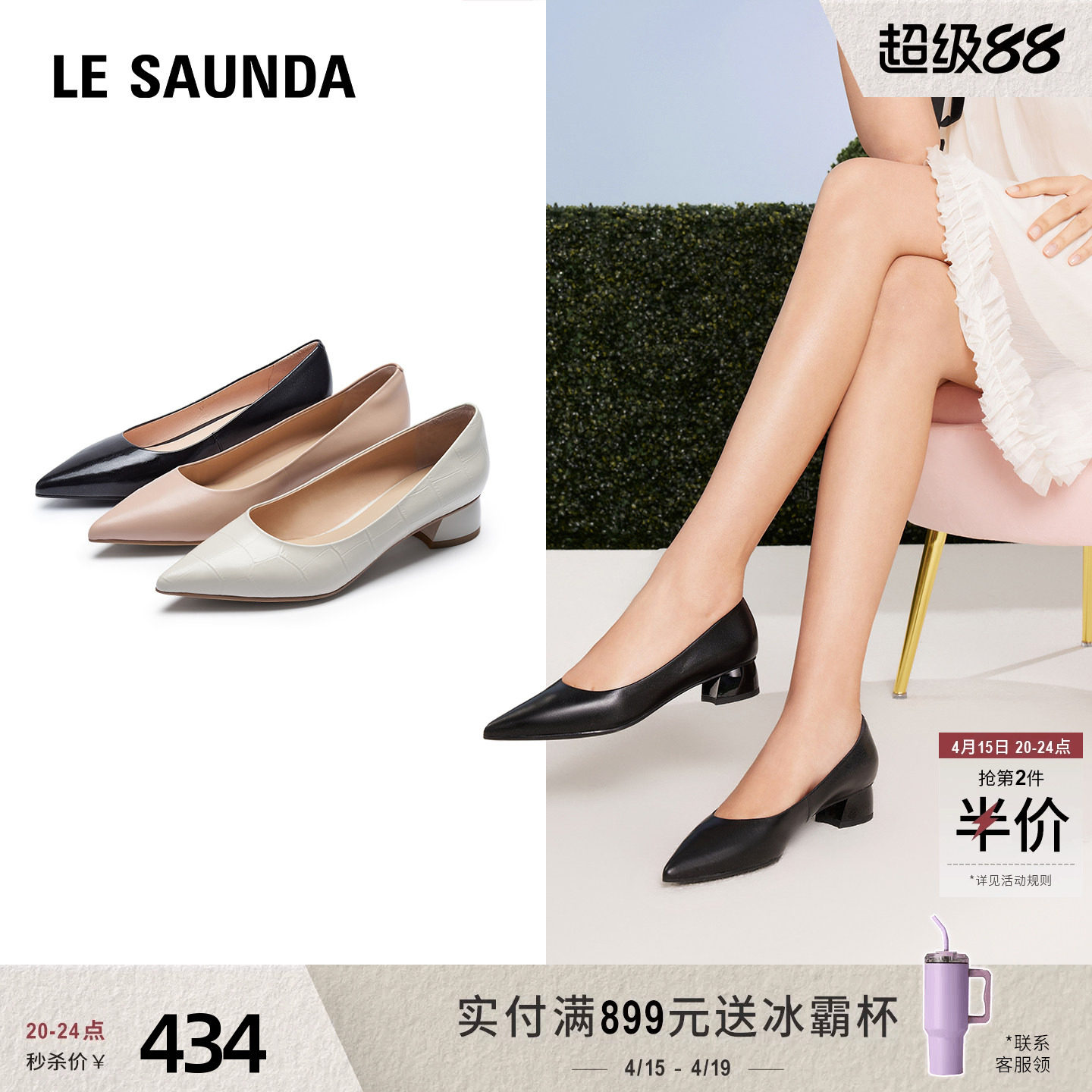 尖头浅口粗跟真皮单鞋[第2名]