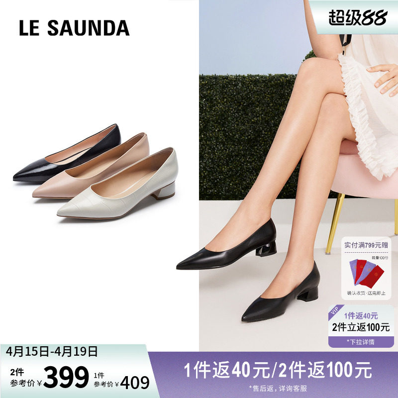 莱尔斯丹奥莱春夏新款通勤尖头真皮通勤浅口中粗跟单鞋女6T35507