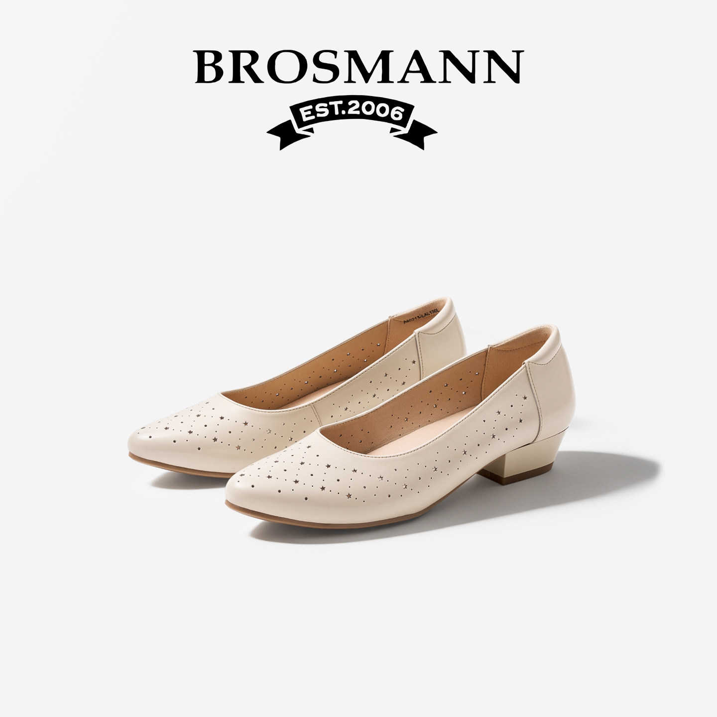 宝舒曼米色真皮镂空粗跟单鞋女不累脚法式尖头浅口新款一脚蹬女鞋