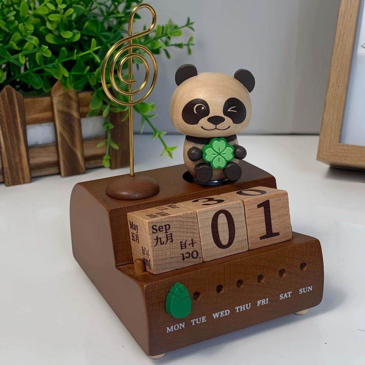 家居摆件熊猫日历发条木质音乐盒八音盒儿童节日61礼物摆件手工