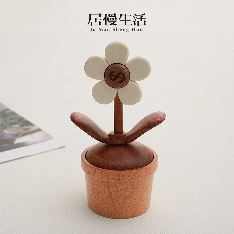 创意有钱花木质音乐盒八音盒可爱太阳花桌面治愈系好物摆件小礼物