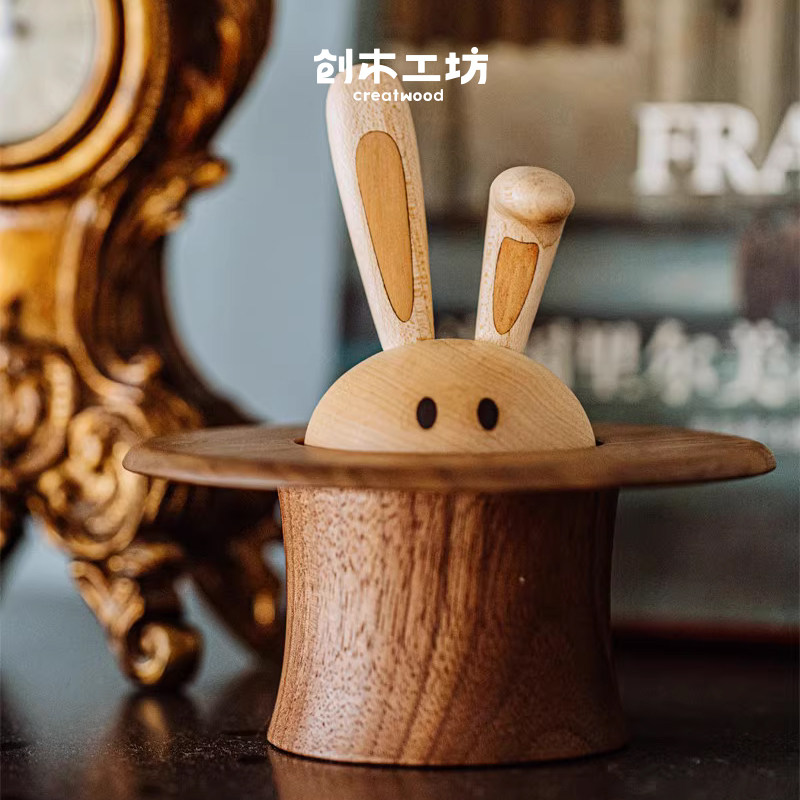 【魔术师的兔子】创木工坊实木质音乐盒八音盒节日礼物兔年发大财