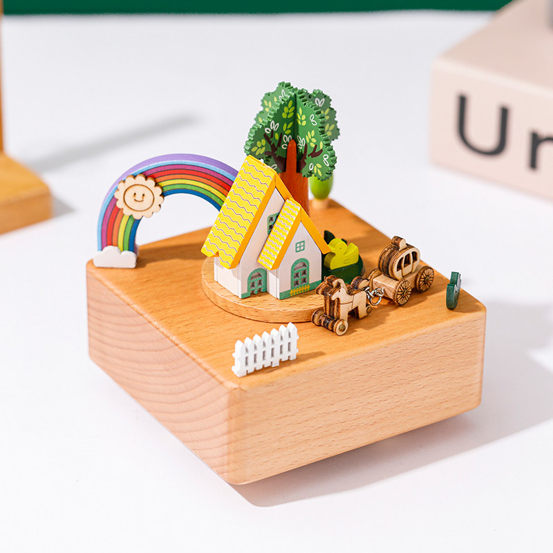 高级感送女朋友女生闺蜜彩虹屋木质音乐盒八音盒情侣生日圣诞礼物