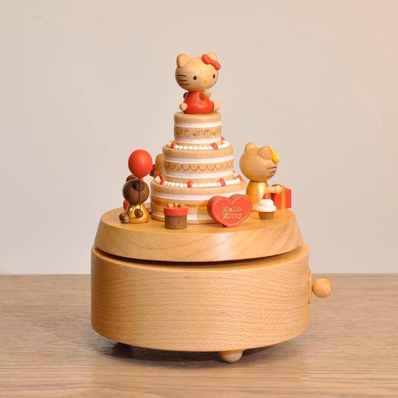 森活木趣木质音乐盒八音盒可旋转HelloKitty女生女孩儿童生日礼物