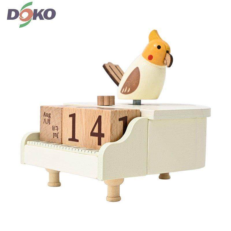 小鸟钢琴日历旋转音乐盒女孩生日礼物万年历木质音乐盒八音盒女孩