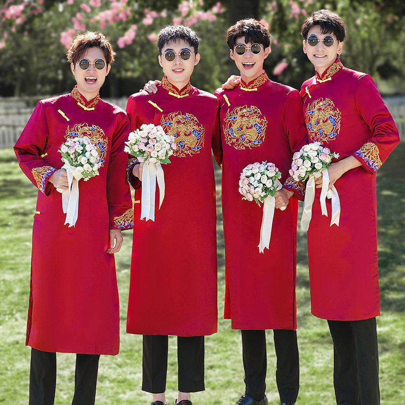 伴郎服中式兄弟装礼服搞笑中国风结婚唐装大褂旗袍伴郎服兄弟团男