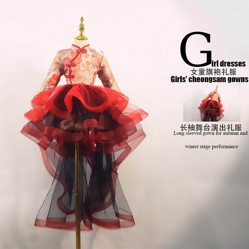 女童中国风新中式改良旗袍儿童红色幼儿演出走秀礼服女孩古风唐装
