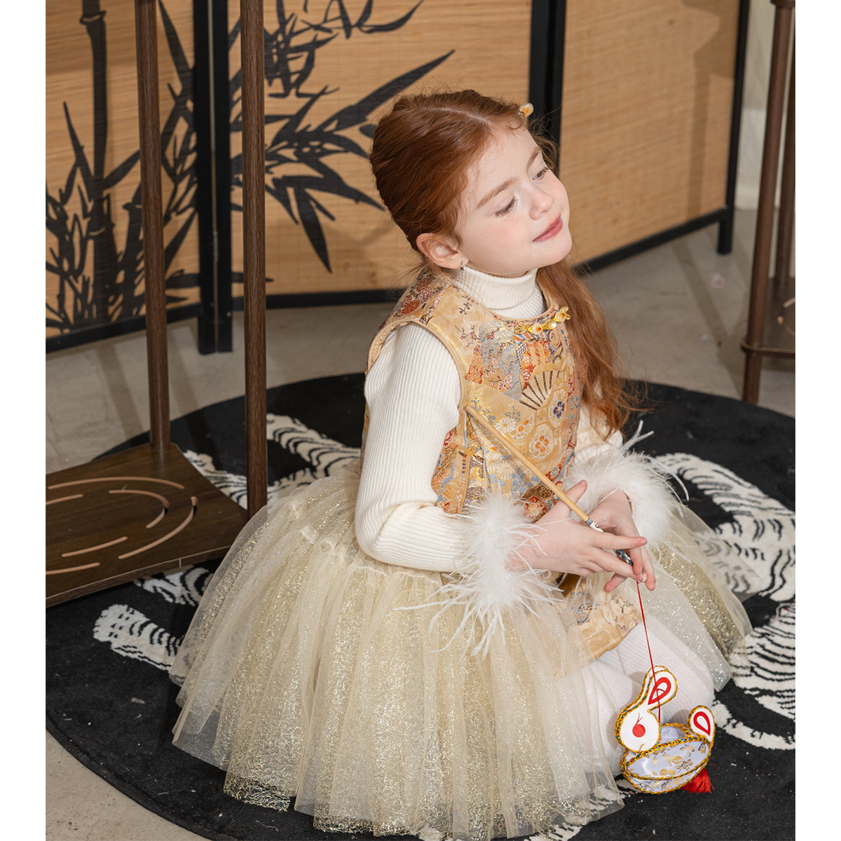 女童中国风旗袍裙冬装2025新款洋气儿童夹棉连衣裙女孩礼服背心裙