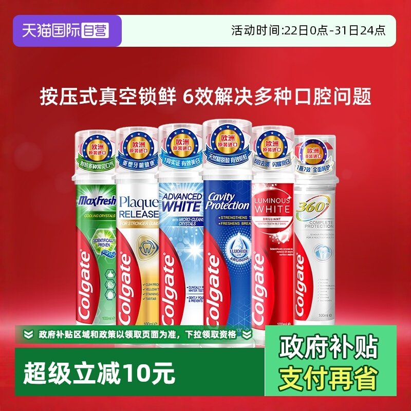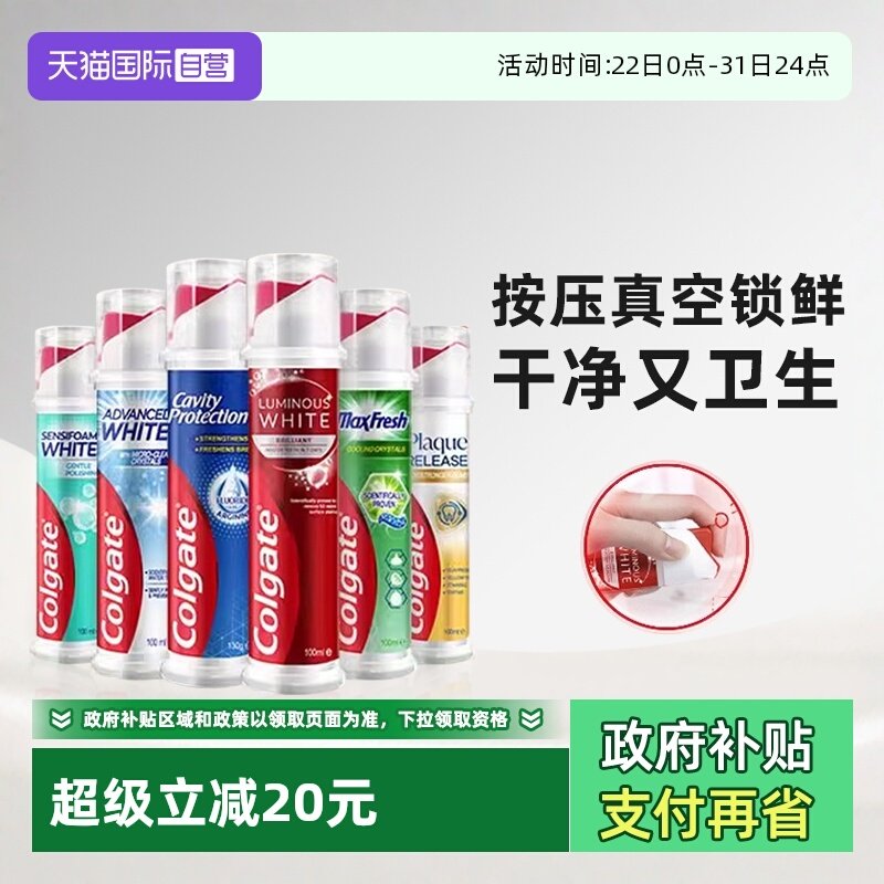 【自营】高露洁直立式牙膏进口按压式孕妇成人牙菌斑深洁防蛀亮白